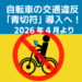 社会 自転車ルール道路交通法改正 新たに施行される自転車ルール:安全と快適なサイクリングのために(令和8年4月1日より道路交通法改正) 2026年3月15日 新自転車ルールは車道通行の原則化とライト使用義務を強調し、安全性向上を目指す。ヘルメット着用も推奨され、スマホ操作の注意も喚起される。定期点検で事故予防を図る。 「年齢関係ないやろ!」「えっ…違反なの?」 スマホ保持で1万2000円!? 来月開始の自転車「青切符」様々な意見が… 結局、何が違反対象なの? …路交通法施行... ハピ速
